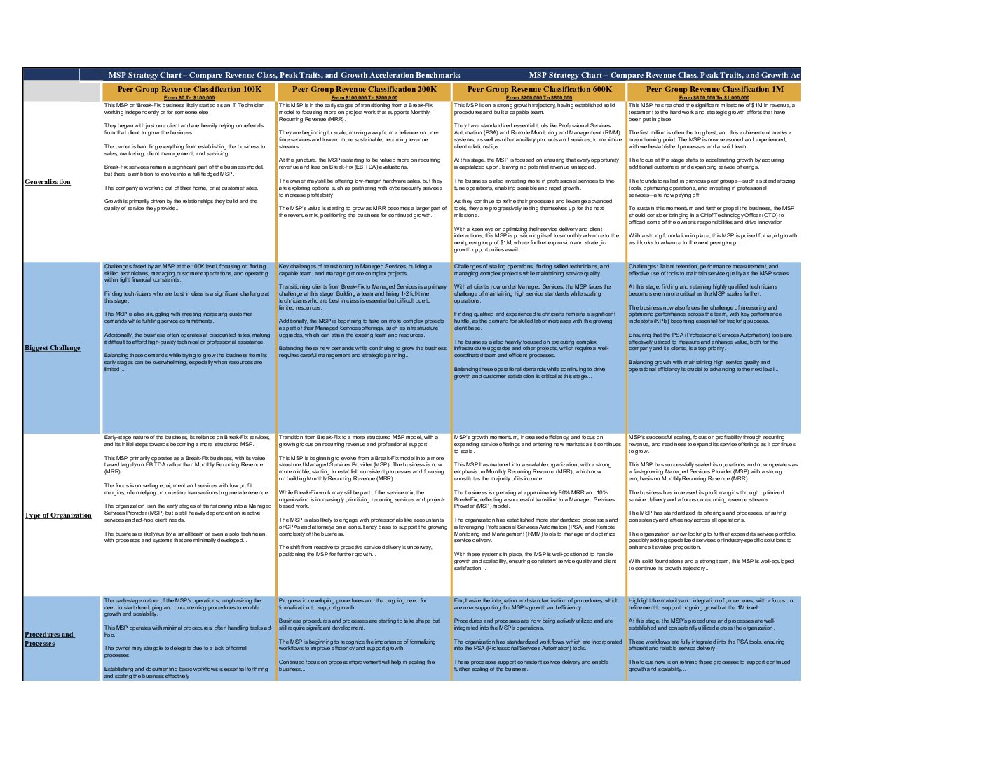 The $100M MSP Scaling Roadmap is a high-impact, visual benchmarking tool based on the MSP Comparison Peer Peak Traits. It distills the most critical insights from the full MSP Strategy Growth Chart into an easy-to-digest format—designed to help MSP executives identify exactly where they are, what’s holding them back, and how to accelerate forward.